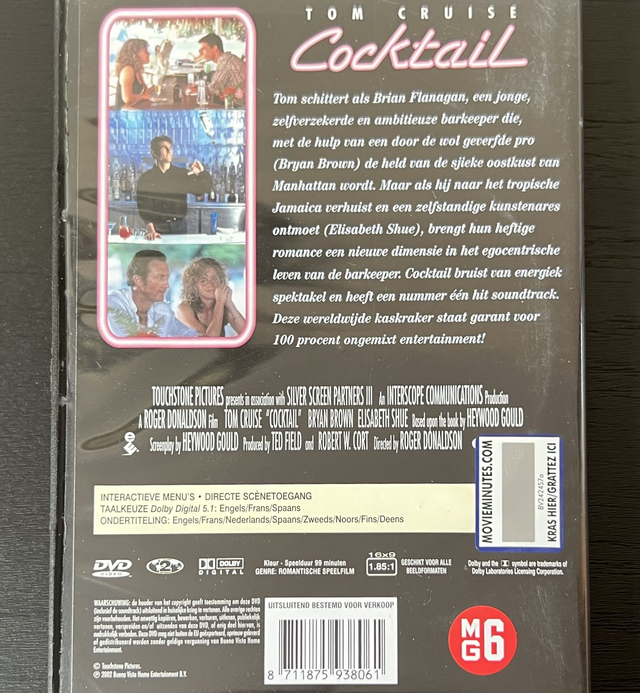 DVD : Cocktail * PAL 2 Region * Tom Cruise *